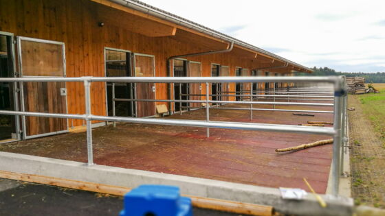 Der Neubau wurde im Jahr 2016 errichtet. Während der Holzbau bauseits erstellt wurde, erfolgte der Einbau von zwölf Einzelboxen durch die as pferdestall gmbh. Zwei Integrationsboxen und zwei Laufstallungen für je sechs Pferde zeichnen diese Referenz weiter aus.