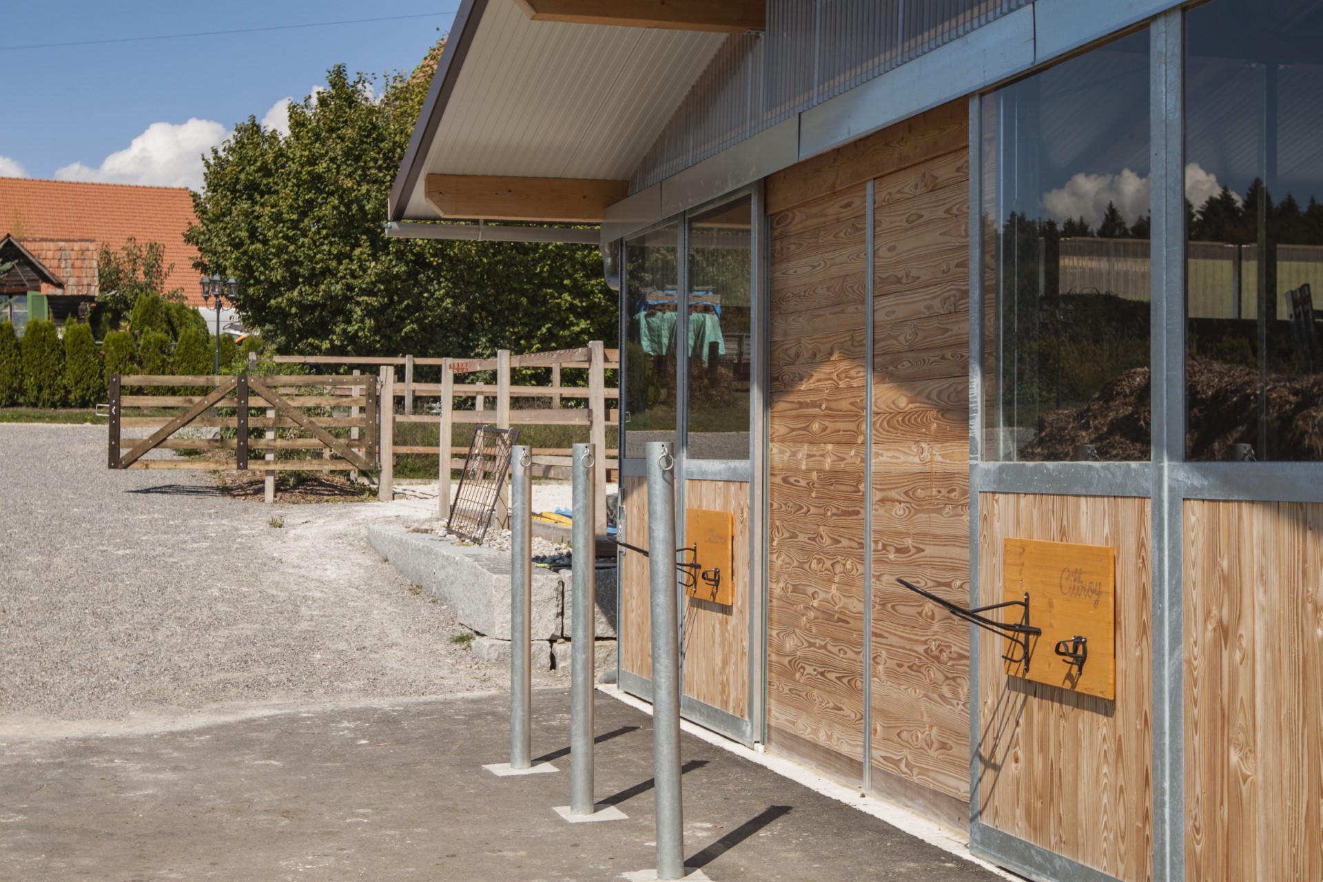 Dieser Neubau wurde im Jahr 2018 erstellt. Als Privat- und Pensionsstall wurde er für die Haltung von sechs Pferden konzipiert.