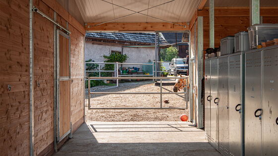 Die Pferde werden in einer Gruppenhaltung (Laufstall) gehalten. Der Neubau ermöglichte es, mehr Pferde zu beherbergen. Es bestehen zwei getrennte Liegebereiche, in der Mitte befindet sich die gedeckte Fütterung mittels Futterstandwände. Im neuen Gebäude befinden sich neben dem neuen Liegebereich zwei Einzelboxen mit direkten Ausläufen. Zudem wurden auch ein grosser Bereich als Lager für Futter, Stroh und Heu sowie einige gedeckte Einstellplätze für landwirtschaftliche Fahrzeuge realisiert.
