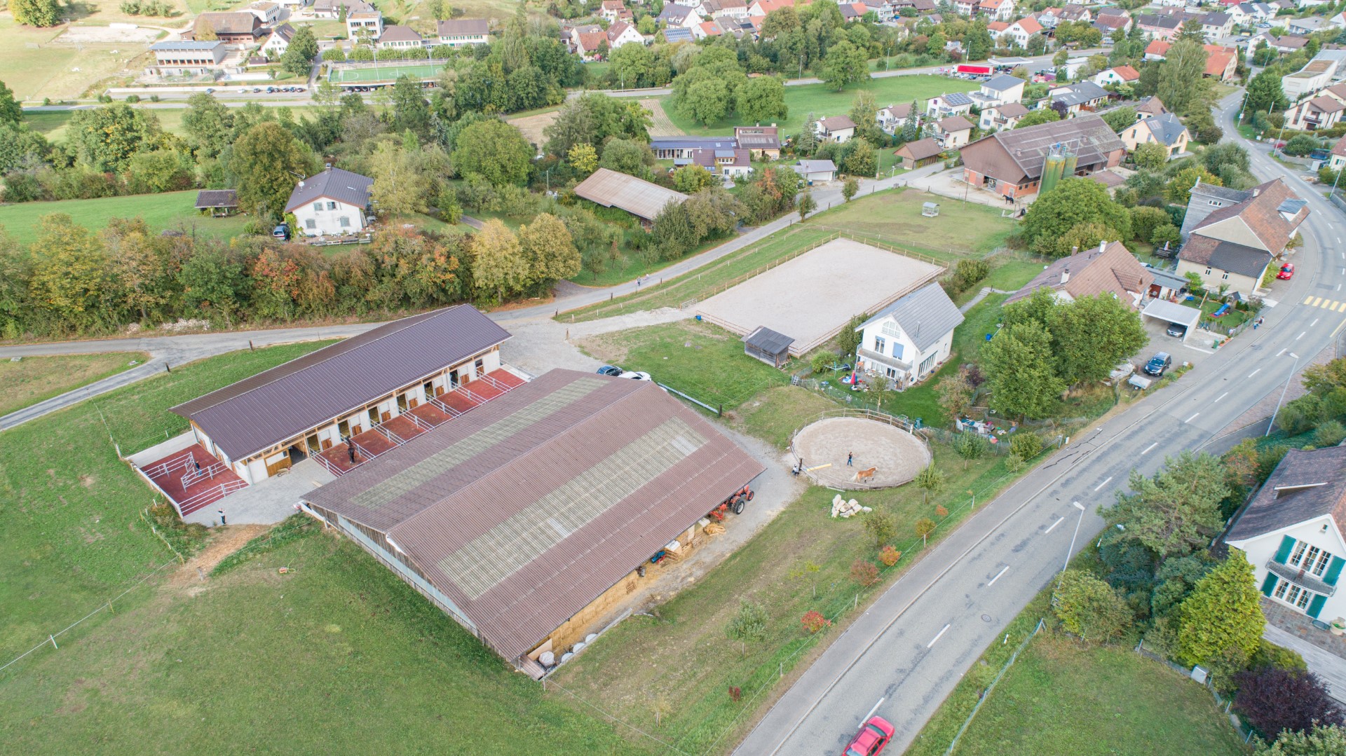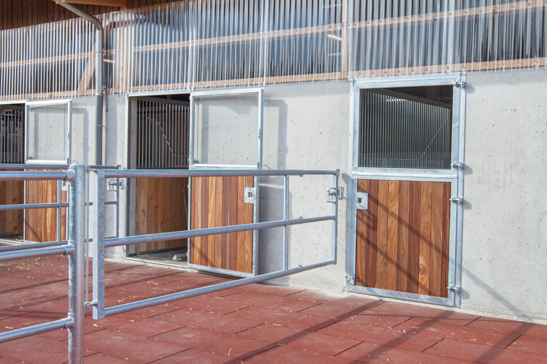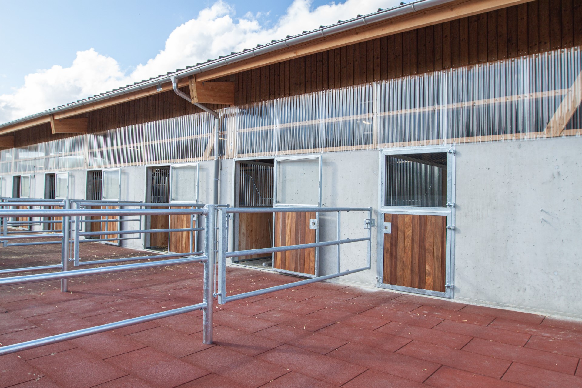 Der private Pensionsstall Ziegelhof in Effingen umfasst sieben Einzelboxen in einer Reihe und drei weitere Einzelboxen, die durch das flexible Vario-System als Laufstall (Gruppenhaltung) umgenutzt werden können. Einer der beiden Waschplätze wurde zusätzlich mit einem Solarium ausgestattet. In die Boxenfronten wurde bauseits ein automatisches Fütterungssystem eingebaut. So findet die Heufütterung durch zeitgesteuerte Klappen statt. Das Gebäude wurde bauseits in Massiv- und Holzbauweise erstellt. Die as pferdestall gmbh zeichnete für den gesamten Innenausbau und die Aussenplätze verantwortlich.