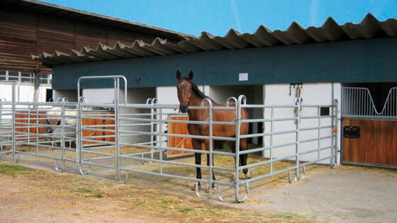 Zum Bau mobiler Boxenanlagen für Pferde.