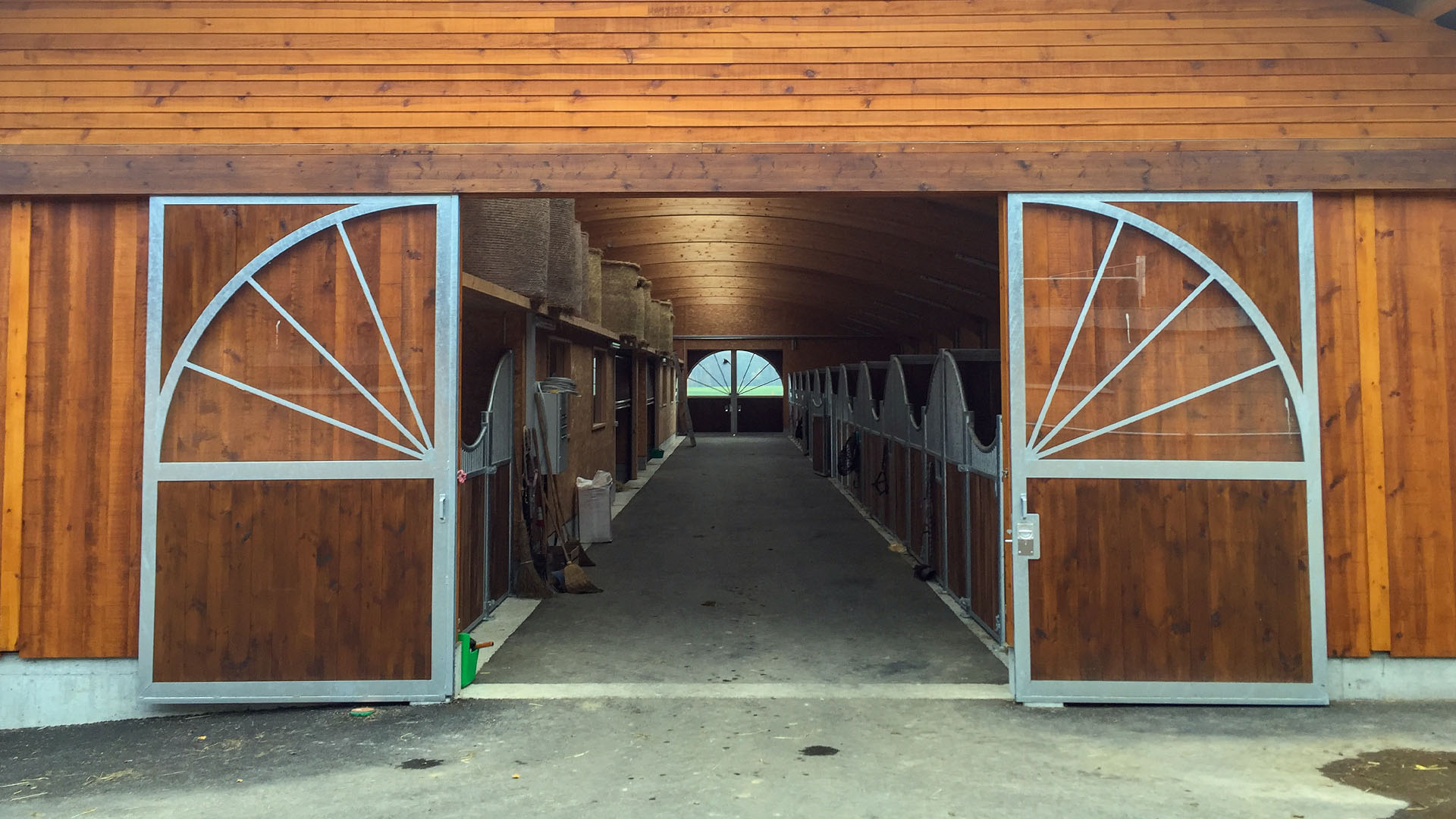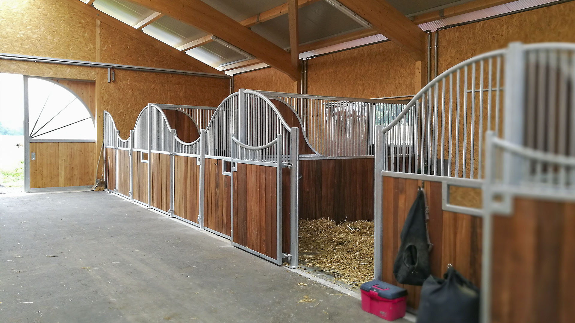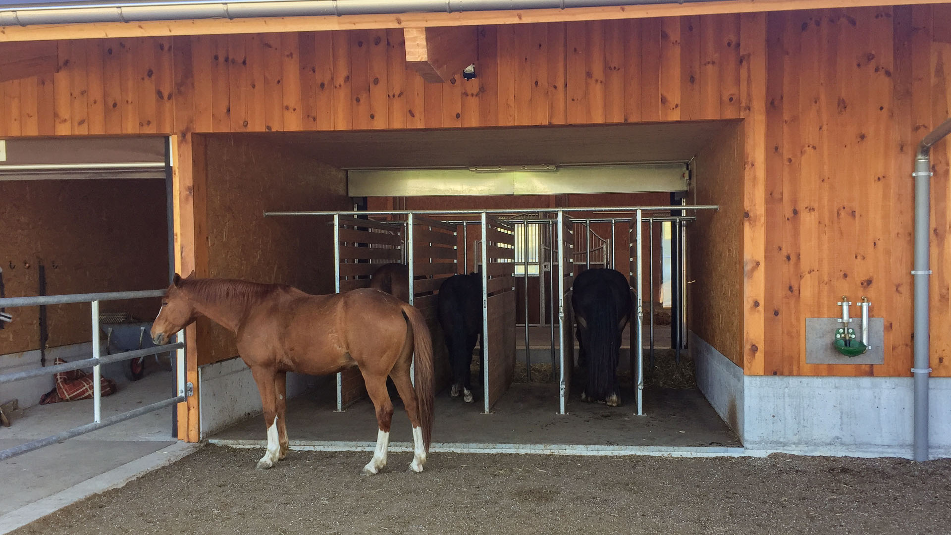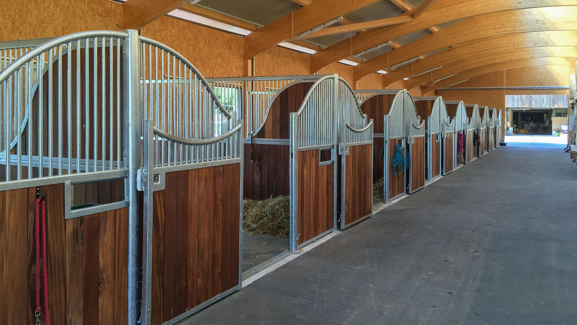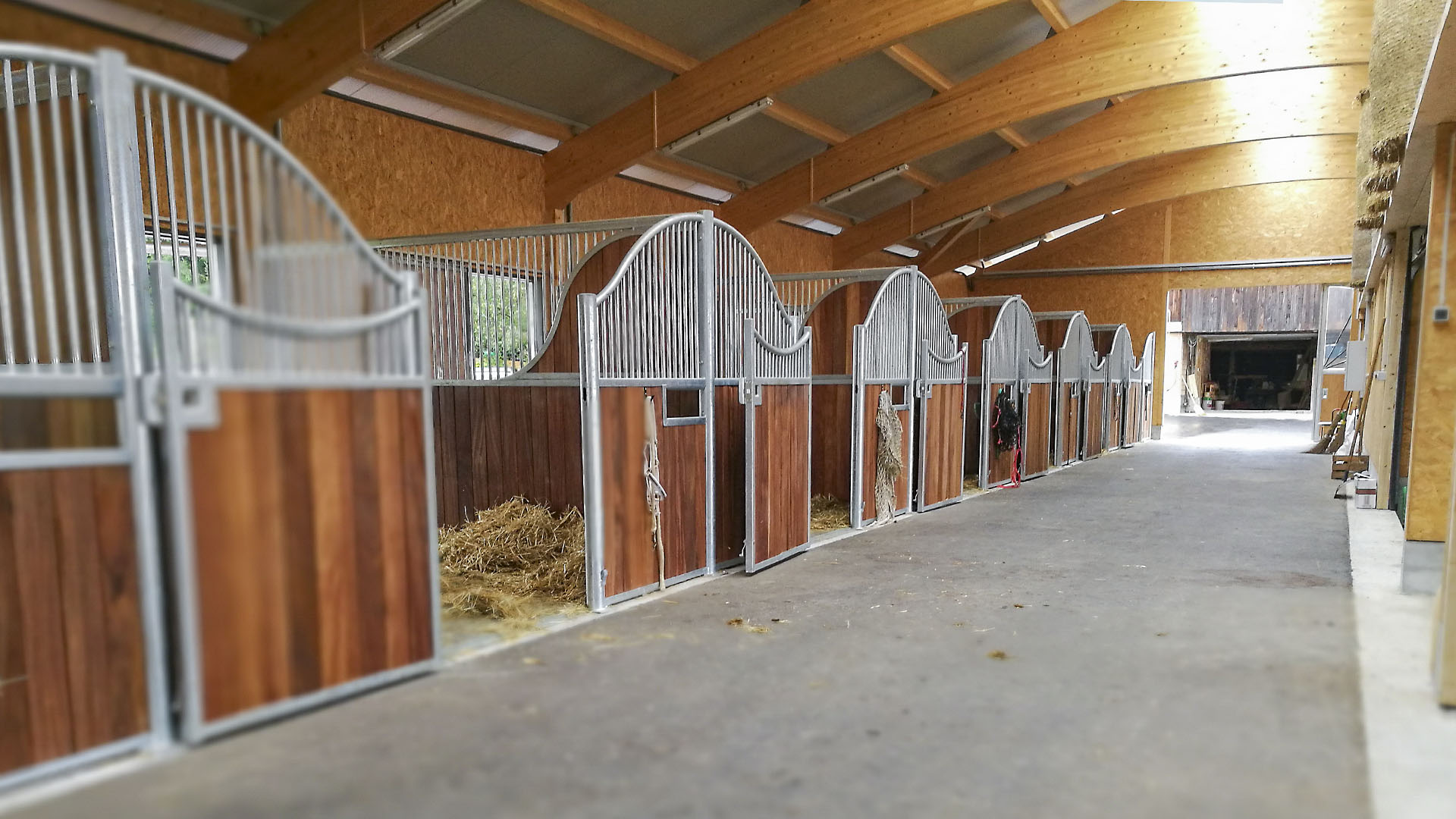 Der Neubau wurde im Jahr 2016 errichtet. Während der Holzbau bauseits erstellt wurde, erfolgte der Einbau von zwölf Einzelboxen durch die as pferdestall gmbh. Zwei Integrationsboxen und zwei Laufstallungen für je sechs Pferde zeichnen diese Referenz weiter aus.