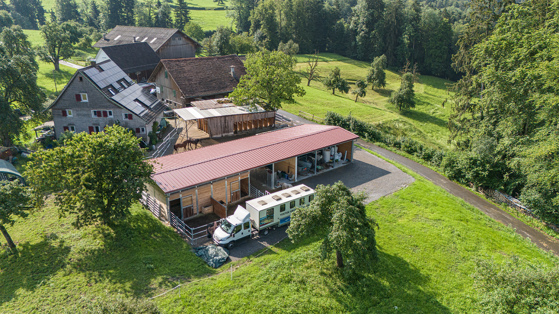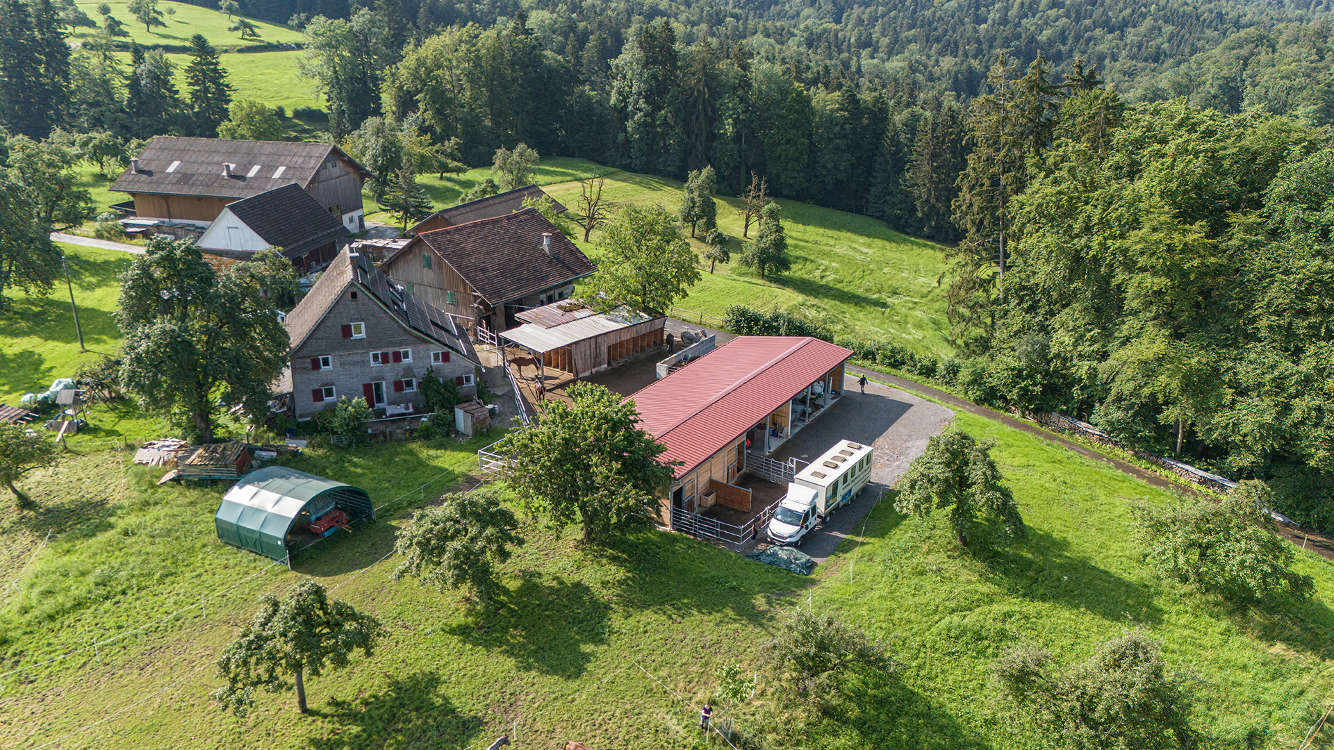 Die Pferde werden in einer Gruppenhaltung (Laufstall) gehalten. Der Neubau ermöglichte es, mehr Pferde zu beherbergen. Es bestehen zwei getrennte Liegebereiche, in der Mitte befindet sich die gedeckte Fütterung mittels Futterstandwände. Im neuen Gebäude befinden sich neben dem neuen Liegebereich zwei Einzelboxen mit direkten Ausläufen. Zudem wurden auch ein grosser Bereich als Lager für Futter, Stroh und Heu sowie einige gedeckte Einstellplätze für landwirtschaftliche Fahrzeuge realisiert.