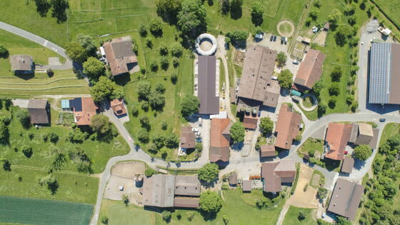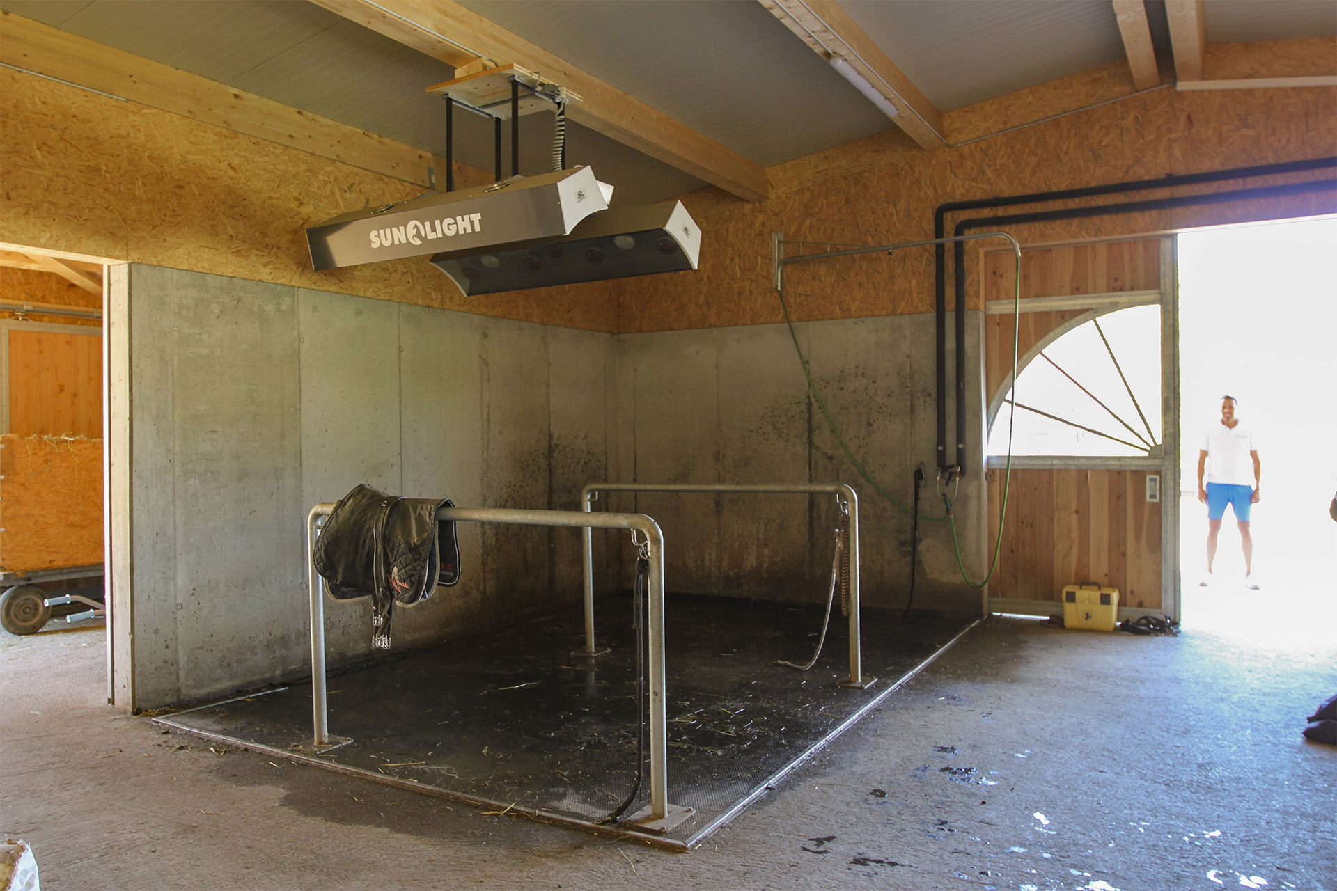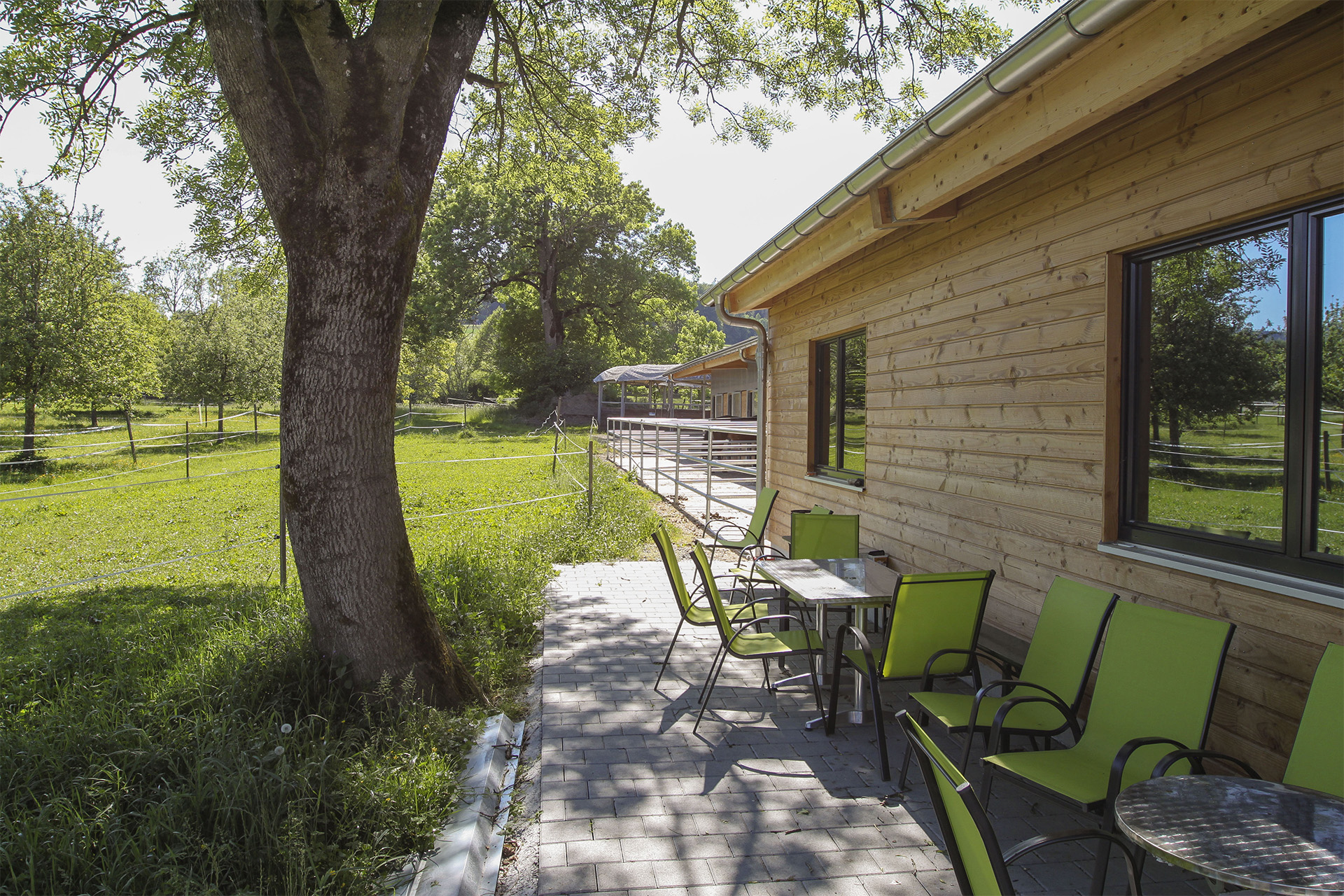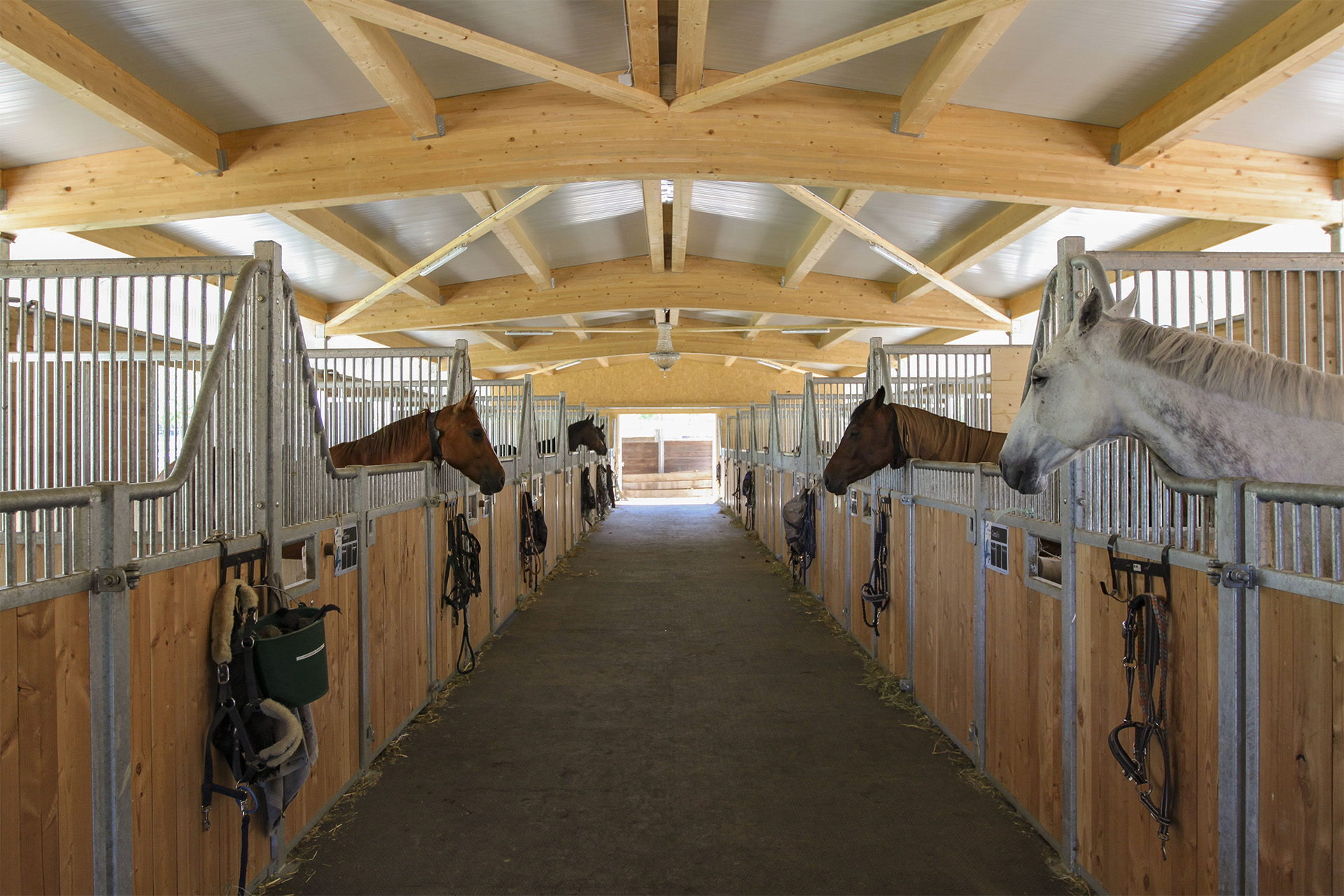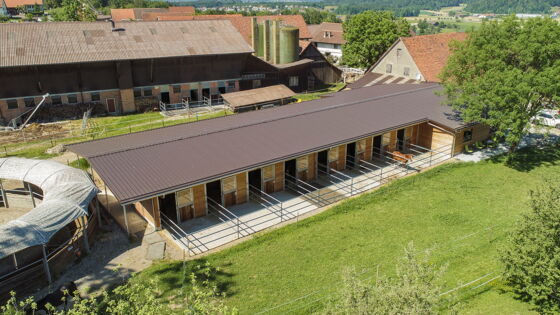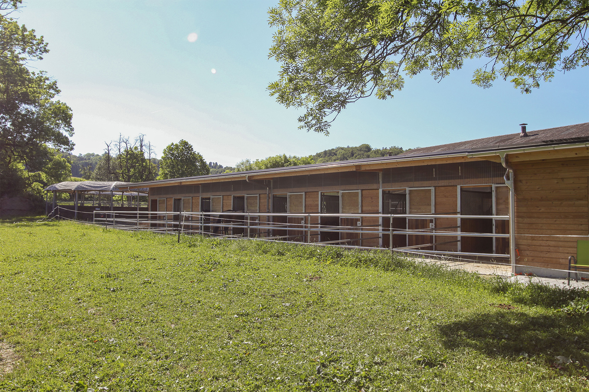 Die bestehende Pferdepension wurde durch einen Neubau vergrössert. Das Gebäude wurde in einer Mischbauweise erstellt. Ein örtlicher Holzbauer erstellte die Tragstruktur, die Nebenräume und das Dach des Gebäudes. Die Aussenwände mit Aussenboxentüren sowie die Pferdeboxen-Wände wurden durch die as pferdestall gmbh realisiert. Der Neubau umfasst 16 Einzelboxen, Nebenräume, Waschplätze, ein Solarium, ein Futter-, Stroh- und Heulager sowie einen grossen Aufenthaltsraum.