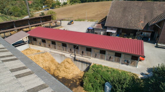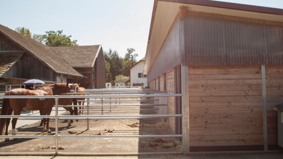 Dieser Neubau wurde im Jahr 2017 erstellt. Als Pensionsstall wurde er mit einem Universal-Superstall für die Haltung von neun Pferden ausgestattet.